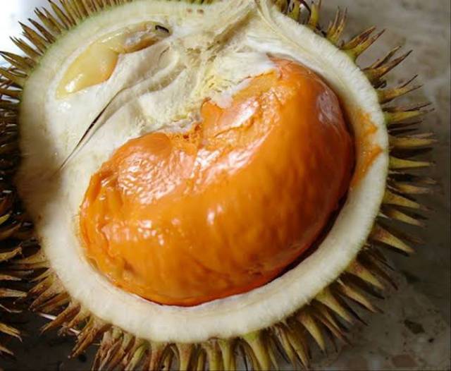 Durian ini asalnya dari Bogor, Jawa Barat. Keunggulannya terletak pada warna daging buah yang kuning cerah bak matahari. Aromanya tak terlalu tajam, dagingnya tergolong tebal, manis legit, serta tak beralkohol. (Editor: A)