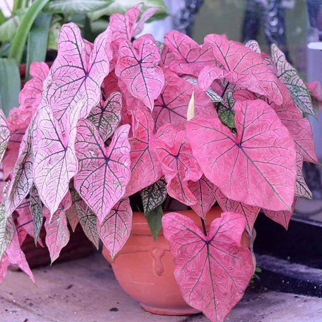 Tanaman caladium amat beragam macamnya, salah satu yang banyak diminati yaitu caladium spring fling. Tanaman ini mempunyai karakteristik daun dengan didominasi warna merah muda dengan sedikit warna hijau pada sekitar tulang serta pinggiran daun.