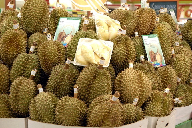 Durian adalah buah tropis yang berasal dari Asia Tenggara. Durian memiliki kulit yang keras dan berduri, dan daging buah yang berwarna kuning atau putih. Durian memiliki aroma yang kuat dan khas, yang disukai oleh sebagian orang dan tidak disukai oleh sebagian orang lainnya.
